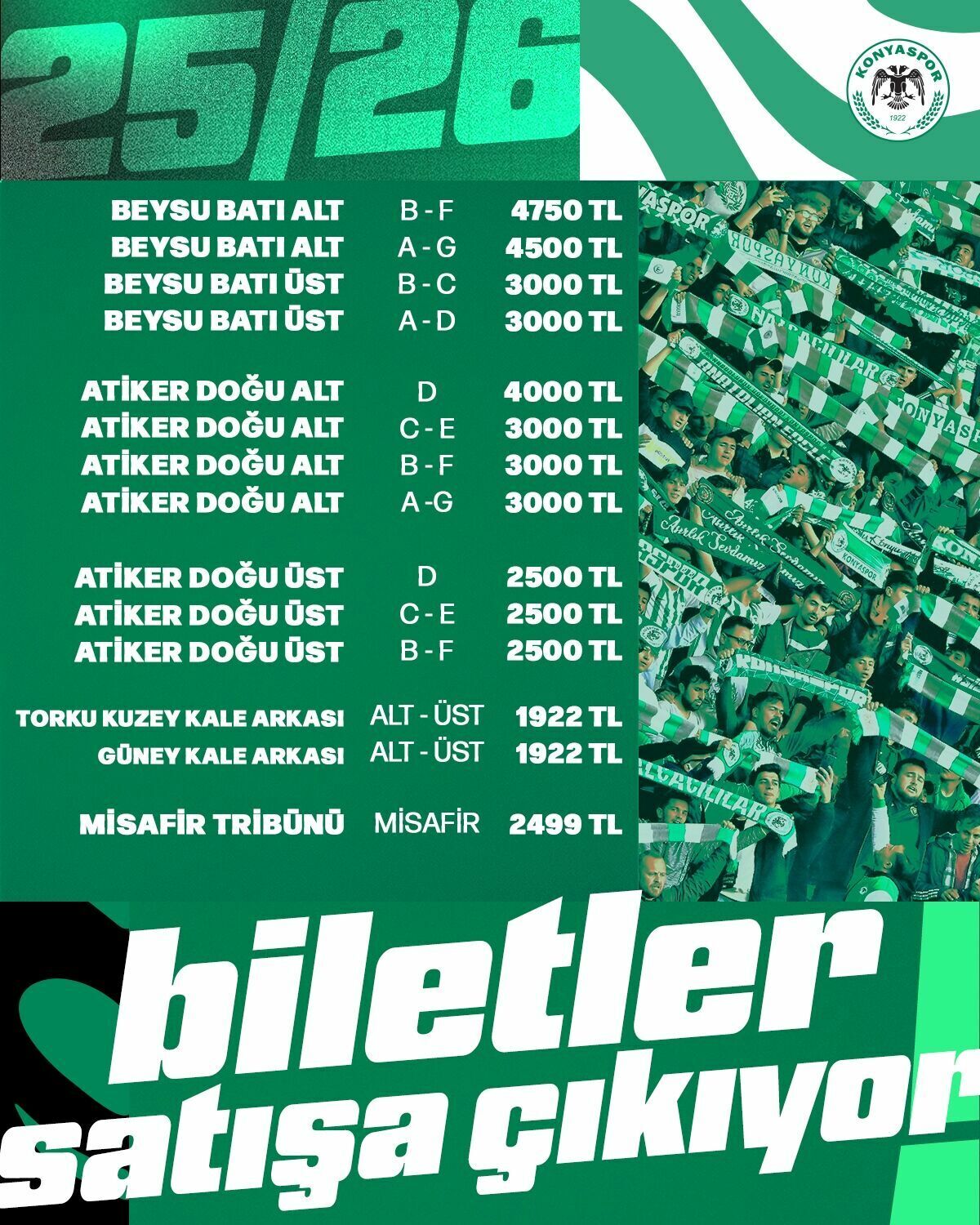 21 Şubat Cumartesi günü saat 20.00’de MEDAŞ Konya Büyükşehir Stadyumu’nda oynanacak maçın biletleri satışa çıkıyor. Karşılaşmanın biletleri, 17 Şubat Salı günü saat 18.00 itibarıyla satışa sunulacak.